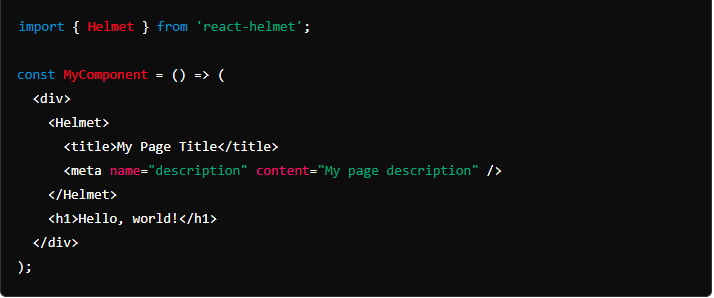 Example code snippet for React Helmet: